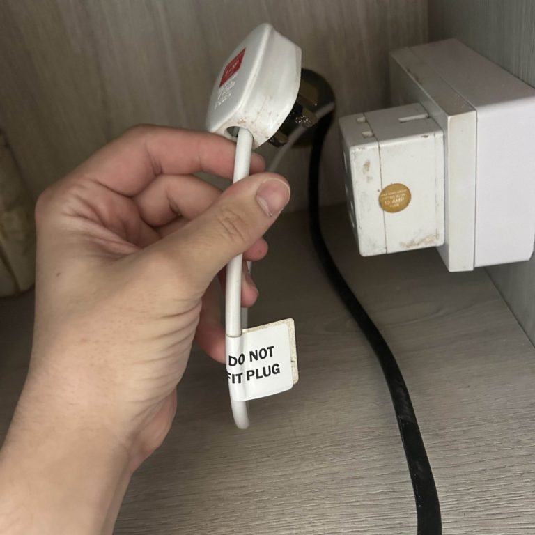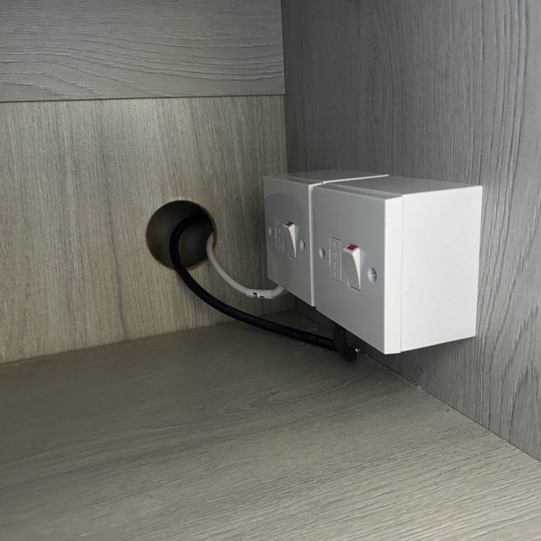 High load appliances were installed incorrectly with plug heads, This can cause heat build up, unless fixed. In this case, plug heads were removed and cables fitted into fused outlets.