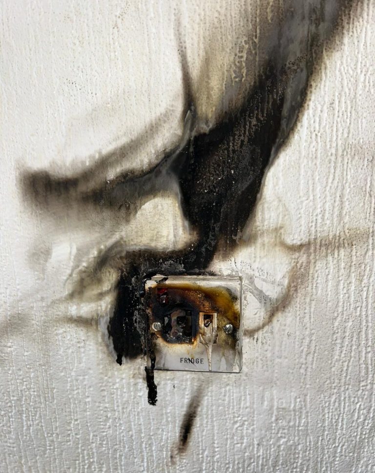 This job was to make safe an electrical fire. Folded clothes were in front of this fuse, which could have caused the property to be completely destroyed.